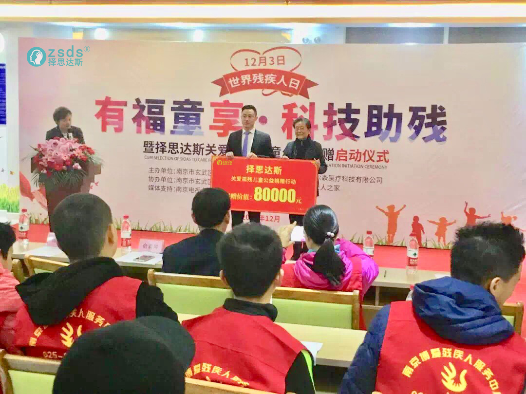 2018年12月3日,是每年一度的“世界残疾人日”。上午9:30,“有福童享•科技助残”公益捐赠行动在我市隆重启动,本次活动由南京市玄武区残联牵头主办,市慈善总会联合玄武区盲协、晏公庙社区、博爱勤善残疾人之家、择思达斯经颅磁共同协办,来自社会助残机构代表、各界媒体、以及优秀义工代表共计100余人出席活动现场,共同见证择思达斯科技助残关爱孤残群体的爱心启动仪式。