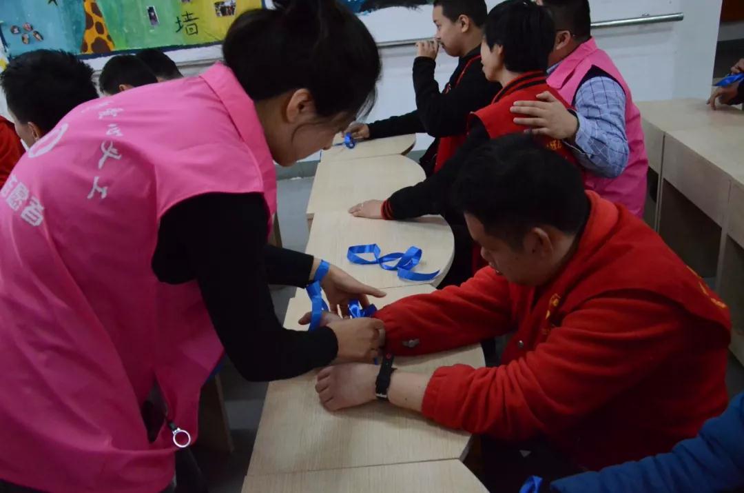 系上蓝丝带 传递关怀与呵护